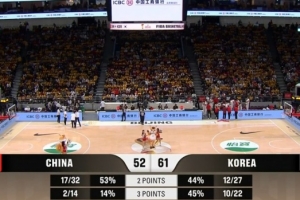 體育資訊11月28日訊 男籃世亞預(yù)階段一,中國(guó)男籃三節(jié)52-61落后韓國(guó)男籃。