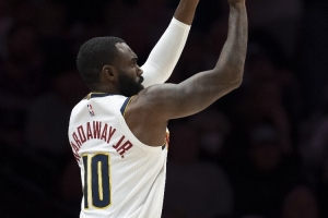 上半場(chǎng),掘金球員小哈達(dá)威表現(xiàn)出色,尤其時(shí)外線投得很準(zhǔn),次節(jié)獨(dú)得12分,在18分鐘的時(shí)間里,投籃10中6,三分球8中5,轟下17分1籃板的數(shù)據(jù)。