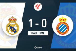 體育資訊9月20日訊 北京時(shí)間9月20日22時(shí)15分,西甲第5輪,皇馬坐鎮(zhèn)伯納烏球場(chǎng)迎戰(zhàn)西班牙人。上半場(chǎng),米利唐世界波首開紀(jì)錄。半場(chǎng)戰(zhàn)罷,皇馬暫1-0領(lǐng)先西班牙人。