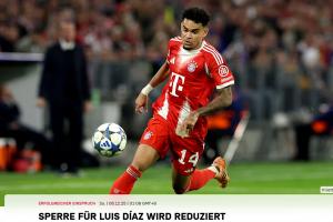 體育資訊12月06日訊 拜仁官方消息,迪亞斯歐冠禁賽上訴成功,禁賽由3場縮短至2場。