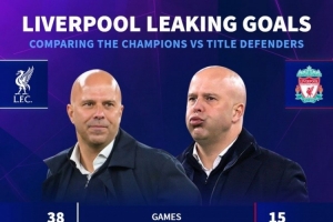體育資訊12月7日訊 英超第15輪比賽,利物浦客場3-3戰(zhàn)平利茲聯(lián)。德國轉會市場統(tǒng)計了利物浦上賽季、本賽季的英超丟球數(shù)據(jù),并做出對比。