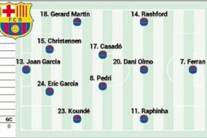 體育資訊9月21日訊 西甲第5輪比賽,巴薩將在主場(chǎng)對(duì)陣赫塔費(fèi),西班牙媒體《阿斯報(bào)》預(yù)測(cè)了此役巴薩的首發(fā)陣容。