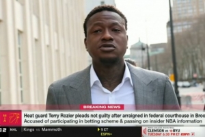 體育資訊12月9日訊 據(jù)ESPN法律分析師瑞安·史密斯報(bào)道,熱火后衛(wèi)特里·羅齊爾今日在布魯克林聯(lián)邦法院出庭,對非法體育博彩起訴書中的兩項(xiàng)聯(lián)邦指控表示不認(rèn)罪,他以300萬美元的保釋金獲釋。