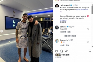 孫興慜重回?zé)岽讨鲌?,現(xiàn)任球隊隊長羅梅羅也在社媒曬出與孫興慜的合照,配文寫道:“又拿下一場關(guān)鍵的主場勝利,每個人都做出了自己的貢獻(xiàn)。很高興與球隊傳奇重逢,我們太想念你了兄弟!”