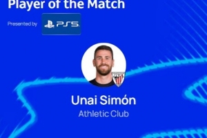 本場比賽畢爾巴鄂競技門將烏奈·西蒙發(fā)揮出色,全場貢獻(xiàn)4次撲救,幫助球隊完成零封,賽后當(dāng)選歐冠官方評選出的本場最佳球員。