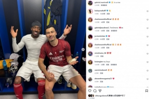 本場比賽馬丁內(nèi)利打進精彩遠射,馬杜埃凱則是雙響建功。賽后馬丁內(nèi)利社媒曬出與馬杜埃凱合照,配文寫道:“連勝繼續(xù)!”
