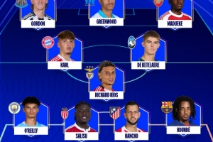 體育資訊12月12日訊 歐冠官方公布了本輪最佳陣,馬杜埃凱、格林伍德、奧賴利、孔德等人入選。