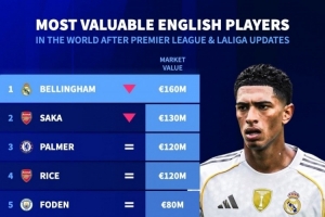 體育資訊12月12日訊 德國(guó)轉(zhuǎn)會(huì)市場(chǎng)更新了英超、西甲球員的身價(jià),并列出英格蘭球員身價(jià)排名,貝林厄姆1.6億歐居首。