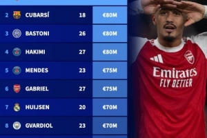 足壇后衛(wèi)身價(jià)排行:薩利巴9000萬(wàn)歐居首,庫(kù)巴西等3人8000萬(wàn)歐