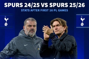 體育資訊12月16日訊 熱刺在本賽季英超表現(xiàn)低迷,新帥弗蘭克執(zhí)教未能達(dá)到預(yù)期,《轉(zhuǎn)會市場》統(tǒng)計顯示熱刺的表現(xiàn)還不及上賽季同期。