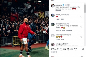 姆伯莫社媒曬出比賽照片,并寫道:“瘋狂的比賽,盡管我們本希望全取三分,回頭見(jiàn)!”