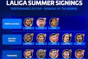 體育資訊12月21日訊 《轉會市場》列出了本賽季多位西甲新援,并根據(jù)表現(xiàn)為他們進行了評級,拉什福德、赫伊森等5將獲評第2檔,阿諾德獲評第5檔。