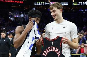 賽后,弗拉格接受了記者采訪(fǎng)。談到和埃奇庫(kù)姆的對(duì)決,他說(shuō)道:“我認(rèn)為我們倆都打了一場(chǎng)扎實(shí)的比賽。他表現(xiàn)得非常出色,打得很有侵略性,成功到達(dá)了他的得分點(diǎn)并挺身而出。我知道他有這樣的能力,他是一個(gè)優(yōu)秀的球員。這幾年來(lái),我們一直在現(xiàn)場(chǎng)對(duì)戰(zhàn),競(jìng)爭(zhēng)水平非常高。我了解他的競(jìng)爭(zhēng)精神以及他每晚帶來(lái)的比賽強(qiáng)度。所以我知道這場(chǎng)比賽會(huì)是怎樣的?!?/p>