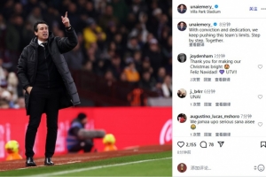 體育資訊12月22日訊 今天凌晨,維拉在英超主場2-1擊敗曼聯(lián),球隊主帥埃梅里賽后在Instagram發(fā)文慶祝勝利。