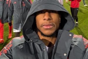 奧利塞當(dāng)選全場(chǎng)最佳球員,賽后他在場(chǎng)內(nèi)進(jìn)行自拍,仍是一臉嚴(yán)肅。