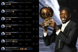 這些推文顯示,現(xiàn)效力于比利亞雷亞爾的阿約澤-佩雷斯曾是登貝萊的偶像之一。