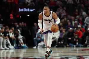 上半場(chǎng),國王球星威少表現(xiàn)還可以,場(chǎng)上打得很興奮,在14分鐘的時(shí)間里,投籃12中4,三分球6中3,罰球2中0,拿到11分3籃板1助攻1搶斷的數(shù)據(jù),有3次失誤。