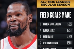 本場(chǎng)比賽,杜蘭特生涯運(yùn)動(dòng)戰(zhàn)進(jìn)球數(shù)超過奧拉朱旺(10749),升至歷史第10位。