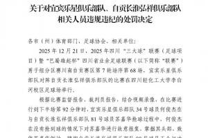 體育資訊12月22日訊 四川省足協(xié)公布處罰決定,在三大球城市聯(lián)賽中揮拳打人的宜賓樂星球員何俊杰被禁賽36個月。