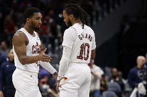 上半場比賽,騎士后場雙槍米切爾和加蘭發(fā)揮不錯,進攻端里突外投都效率在線,其中米切爾12中6,三分7中4,罰球2中2砍下18分3籃板5助攻;加蘭10中6,三分4中3,罰球2中2拿到17分3籃板4助攻1搶斷。