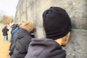 法國杯1/32決賽,法丙球隊布爾格主場0-6馬賽。球迷曬出視頻,球場外一排球迷扒墻縫看球。