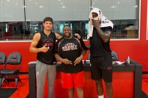 體育資訊9月23日訊 今日NBA訓(xùn)練師Stanley Remy曬出自己與火箭球員謝潑德以及杰夫-格林的訓(xùn)練照。