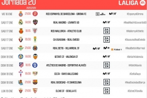 體育資訊12月23日訊 西甲公布了第20輪比賽的開(kāi)球時(shí)間,1月17日21點(diǎn)皇馬vs萊萬(wàn)特,1月19日4點(diǎn)皇家社會(huì)vs巴塞羅那。