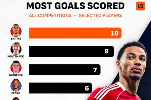 體育資訊12月23日訊 上周末英超第17輪比賽結(jié)束,英國媒體LiverScore列出了本賽季英超部分新援前鋒的進(jìn)球數(shù),?;倏舜蛉?0球排名第一。