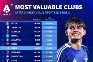 體育資訊12月24日訊 德國轉(zhuǎn)會市場列出了意甲球隊身價排名,國米、尤文、米蘭前三。
