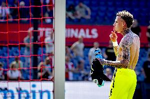 比賽結(jié)束前十分鐘,布翁喬爾諾因肌肉不適倒下。此時(shí),主教練毫不猶豫地立刻派上了胡安-熱蘇斯??椎佼?dāng)時(shí)還有兩次換人機(jī)會(huì),但他只用掉了一次。隨著這位巴西后衛(wèi)的上場(chǎng),諾阿-朗的登場(chǎng)希望徹底破滅,他回到替補(bǔ)席后怒不可遏,一腳踢飛了場(chǎng)邊的水瓶,并將訓(xùn)練背心扔到了空中。