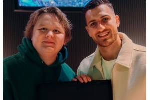 蘇格蘭知名歌手卡帕爾迪在曼徹斯特開演唱會,他獲贈曼聯(lián)球衣,曼聯(lián)官方社媒曬出達(dá)洛特與卡帕爾迪的合照。