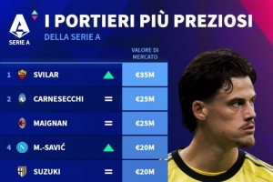 體育資訊12月25日訊 德國(guó)轉(zhuǎn)會(huì)市場(chǎng)列出意甲門(mén)將身價(jià)排名,斯維拉爾3500萬(wàn)歐居首。