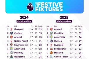 體育資訊12月25日訊 西方傳統(tǒng)節(jié)日圣誕節(jié)之際,英超官方曬圖對本賽季和上賽季的節(jié)禮日積分榜進行了對比。