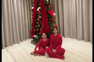 薩拉赫在社媒中配上了兩個女兒與圣誕樹的照片。