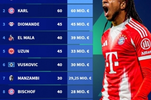 體育資訊12月26日訊 德國轉(zhuǎn)會市場盤點了2025年德甲身價漲幅榜,拜仁兩將奧利塞、倫納特·卡爾分別上漲6500萬歐和6000萬歐位居前二。
