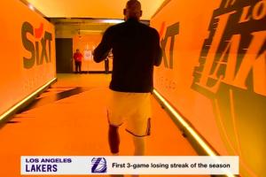 GIF-詹姆斯返回更衣室,字幕給的是湖人賽季首次三連??!