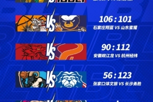 NBL常規(guī)賽第三輪今日戰(zhàn)罷,石家莊翔藍106-101險勝山東蜜獾,安徽皖江龍90-112不敵杭州經緯,張家口體文旅56-123不敵長沙勇勝。