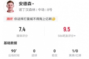 體育資訊12月27日訊 諾丁漢森林在本輪英超1-2不敵曼城,埃利奧特·安德森本場(chǎng)數(shù)據(jù)如下: