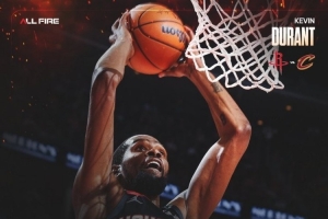 賽后,火箭官方曬圖,發(fā)布杜蘭特本場(chǎng)30+4+7的數(shù)據(jù)海報(bào)。