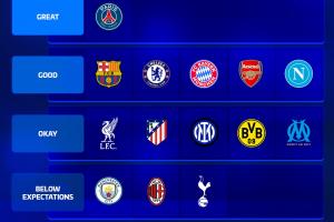 體育資訊12月28日訊 2025年即將結(jié)束,德轉(zhuǎn)發(fā)布了一張他們對(duì)各家歐洲豪門今年表現(xiàn)的評(píng)級(jí),巴黎唯一“頂級(jí)”,皇馬、曼聯(lián)尤文“拉完了”。
