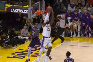 GIF-詹姆斯折疊反扣!湖人主場(chǎng)沸騰!