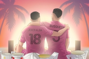 美職聯(lián)曬海報(bào)致敬阿爾巴、布斯克茨:懷抱獎(jiǎng)杯并肩策馬,步入夕陽