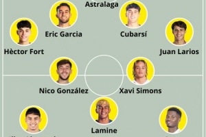 體育資訊12月29日訊 在接受《世界體育報(bào)》采訪(fǎng)時(shí),巴薩球員加維排出了他拉瑪西亞時(shí)期隊(duì)友的首發(fā)陣容,尼科·岡薩雷斯、西蒙斯、亞馬爾、法蒂在列。