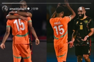 此役,曼聯(lián)球員阿瑪?shù)?、姆伯莫分別代表科特迪瓦、喀麥隆出戰(zhàn),阿瑪?shù)鹿ト胍涣J澜绮ā?/p>