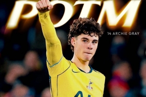 阿奇·格雷斬獲職業(yè)生涯一線隊首粒進(jìn)球,熱刺官方宣布,經(jīng)過球迷的投票,他當(dāng)選本場比賽隊內(nèi)最佳球員。