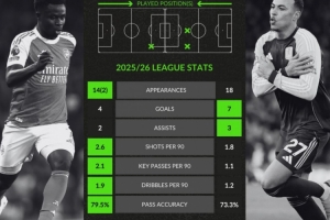 體育資訊12月31日訊 英超賽季上半程最后一輪比賽,阿森納將和維拉交手。本場比賽之前,WhoScored對兩隊(duì)進(jìn)攻核心薩卡及摩根·羅杰斯的數(shù)據(jù)進(jìn)行了對比。