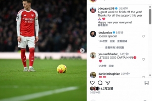本場(chǎng)比賽厄德高送出精彩助攻,他也在個(gè)人社媒曬出本場(chǎng)照片,配文寫(xiě)道:“以出色的一周結(jié)束今年賽程,感謝大家一年以來(lái)的支持,祝大家新年快樂(lè)!”