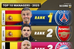 體育資訊12月31日訊 2025年世界足壇年終盤點(diǎn),Score90評(píng)選出2025年年度最佳主帥,其中恩里克實(shí)至名歸排名榜首,阿森納主帥阿爾特塔排名第2。