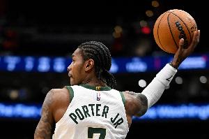雄鹿球員小凱文·波特上半場狀態(tài)很出色,突破也是相當(dāng)靈動犀利,在字母哥休息期間幫助球隊(duì)咬住比分。