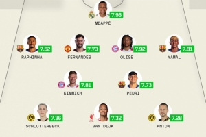 體育資訊1月1日訊 2025年已經(jīng)結(jié)束,sofascore也列出了五大聯(lián)賽年度評(píng)分最佳陣,姆巴佩領(lǐng)銜,巴薩4將在列。凱恩和哈蘭德落選。